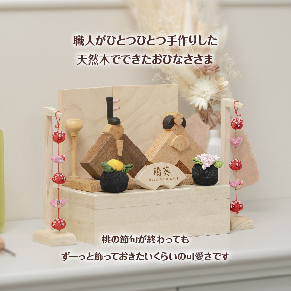 シンプルでコンパクト、天然木のお雛様です。無塗装、無着色、素材そのままの優しいぬくもりが伝わります。天然木ですので木目や色に個体差がありますので、木の風合いとして楽しんでいただければ幸いです。